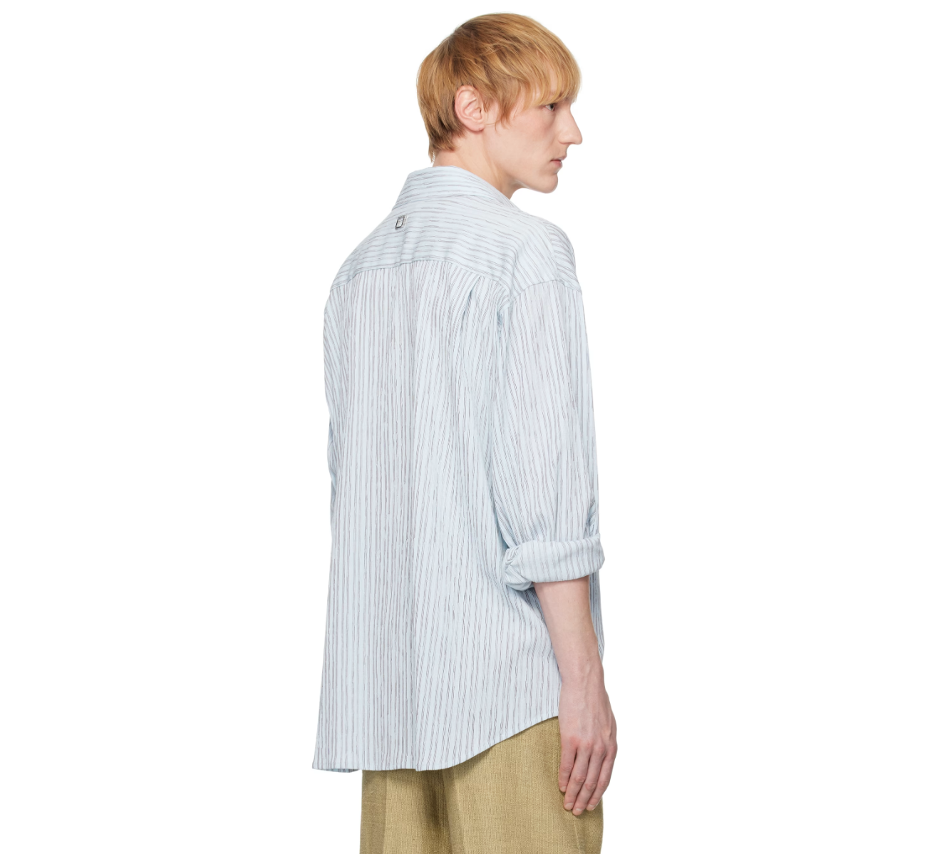 부드러운 파란색 스트라이프 패턴이 특징인 이 셔츠는 클래식하면서도 모던한 분위기를 연출하며, 수트뿐 아니라 단독 착용해도 훌륭한 스타일 포인트가 됩니다.
