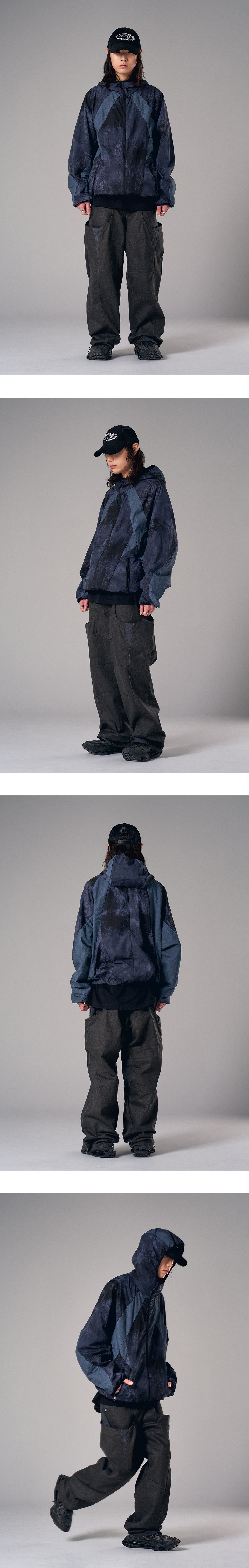 - 포인트: 은은한 네이비 타이다이 패턴 + 오버핏 + 생활방수