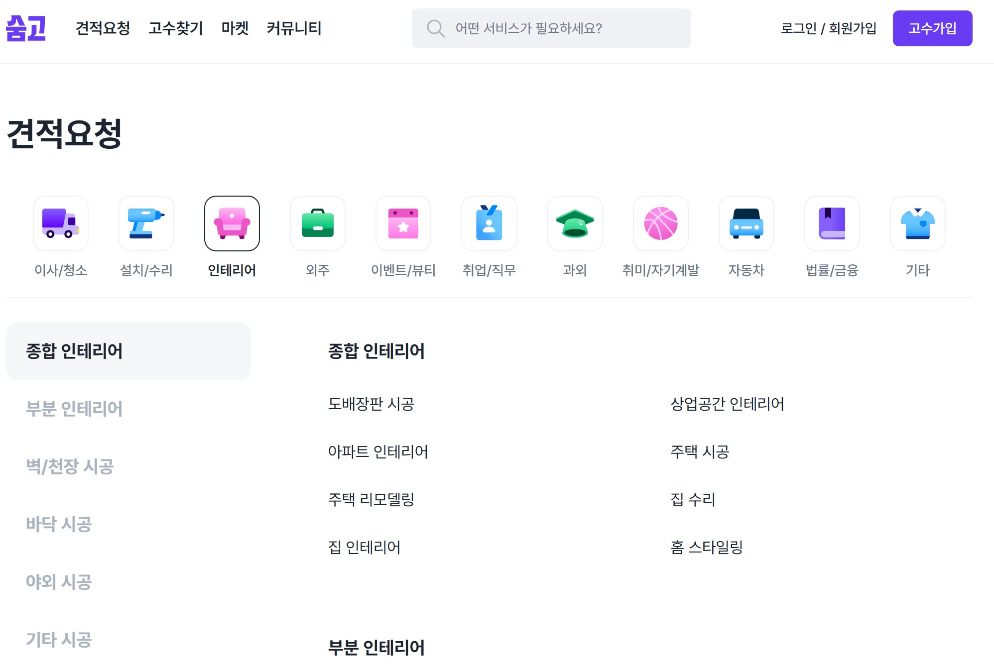 숨고의 경우 자신이 하려고 하는 인테리어 혹은 다른 일에 미확정된 일을 제시하면, 전문업자분들이 의견을 주시고 예상 비용까지 추안을 주시기 때문에 계산이 가능합니다.