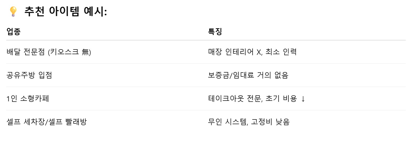 🔍 ‘소규모·무점포’ → 유지비↓ 실패 리스크↓ 회복 탄력↑